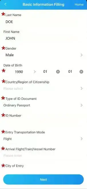 Step-by-step guide: filling the China online arrival card