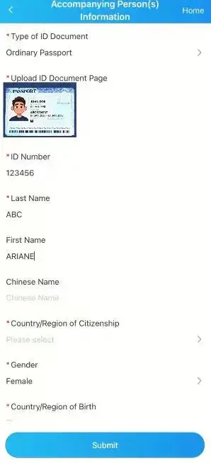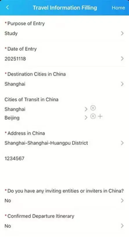 - If you travel frequently to China, save a template of your address in China and emergency contacts to speed future submissions.